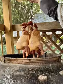 We don't have smoked chicken but we do have delicious roast chicken. Fresh free-range chicken is roasted in a vat, the skin is crispy and the meat is tender and juicy~