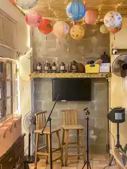 The restaurant has three floors. The ground floor features a traditional ambiance, decorated with calligraphy. The second floor houses the kitchen, and the third floor offers various rooms, making it ideal for families, companies, or private parties.