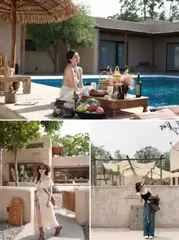 The pinnacle of family hotels, shaped like a huge star with wooden cabins surrounding it like a cluster of stars. Step outside to enjoy the desert star river and sea of sand sunrise.
