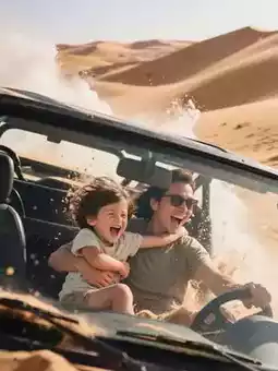 • Desert Surfing Car (ages 8+): Dash down more than 20 sand dunes. Before boarding, kids confidently promise to be brave, but during the ride, they cling tightly to mom and scream. The weightlessness feels like a roller coaster, and sand waves splashing on the car windows feel like watching a 3D movie.