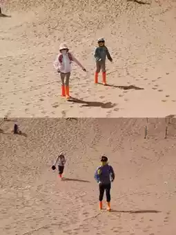 ⭐️⭐️ Sandboarding: Sit on a sandboard and slide down tall sand dunes, with the wind rushing past your ears, enjoying the thrill of speed. Sandboarding is safe and fun, perfect for parent-child experiences.
