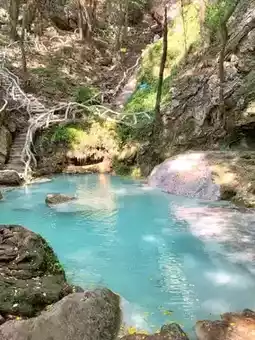 🌟: You can drive into the park, and after a four- or five-minute walk, you'll see the pool in the first picture. The color is truly beautiful; this is an unedited photo.