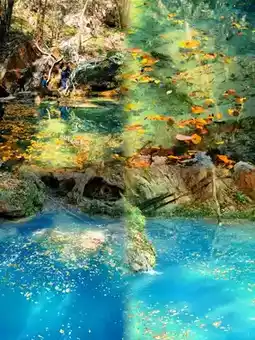 : The cave entrance is shaped like an eagle's beak, and the stream inside the cave is clear, full of adventure!