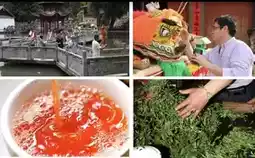 Zhouning Specialty Dishes: Zhouning flat meat dumplings, bitter vegetable and small intestine soup, fried black egg cake, konjac, loach noodles, Guangbing flatbread.