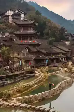 The village is like a gentle ink painting during the day,