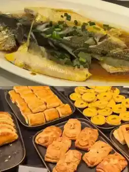 2. The breakfast has a rich variety, combining Chinese and Western styles, including freshly baked bread, various hot dishes, fresh fruits, and many Zhoushan local delicacies, especially seafood noodles, for you to feast on.