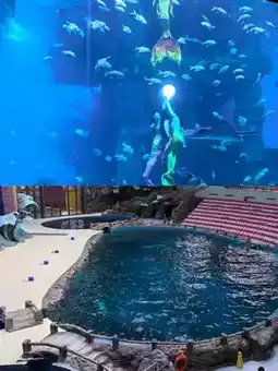 The 12.8-meter-high cylindrical coral fish tank in the lobby is the tallest cylindrical fish tank in the world and is called the "Pillar of the East China Sea."