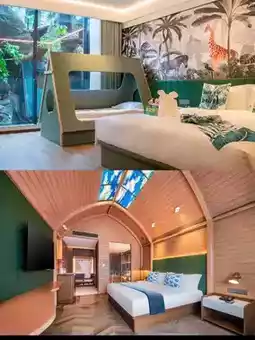 So many room options to choose from! Underwater rooms let you watch fish swim by from your bed, like living in a *Little Mermaid* fairytale; rainforest rooms are lush with greenery 🌳 and even include interactive lemur touch cards, as if you’ve wandered into the Amazon jungle. Treehouse rooms are also super fun, letting kids play freely in their own treetop hideaway, fulfilling all their nature fantasies~ Plus, every room is thoughtfully equipped with kid-sized bathrobes, toothbrushes, cups, slippers, and even air purifiers—making family stays extra worry-free!