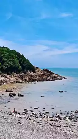 3. **Wushitang (Black Pebble Beach)**: This crescent-shaped bay covered in black pebbles is like a dark gem left on earth💎. After heavy rain, rainbow shells appear in the crevices—picking them up feels like holding a rainbow🌈. At night, lying on the pebbles and listening to the waves washes away all fatigue. You can also take a fishing boat out and have your catch cooked fresh🐟. Note: Taking pebbles is prohibited, and bags are checked at the exit.