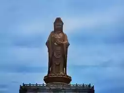 The towering Nanhai Guanyin Statue stands majestic, its golden body gleaming in the sunlight as compassionate eyes gaze upon all beings. Standing before it, the contrast between your small self and the vastness of faith makes you yearn to surrender all your hopes.
