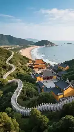 ✅ Putuo Mountain entrance ticket is included in the combined ticket (original price 150 RMB, off-season discount). Morning: Tour the core scenic spots of Putuo Mountain, Puji Temple (main temple): burn incense for blessings, see the thousand-year-old temple, the South Sea Guanyin statue, a 33-meter-high bronze statue facing the sea with majestic presence, Baibu Sand beach—take off your shoes to feel the sand and listen to the gentle waves.