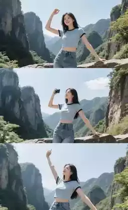 East and West Yao Terraces: Climb high to gaze afar, peaks stretch in the morning mist like a light ink painting; wearing Hanfu or martial arts style jackets, the fluttering hems look super cool!