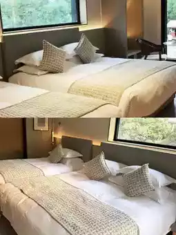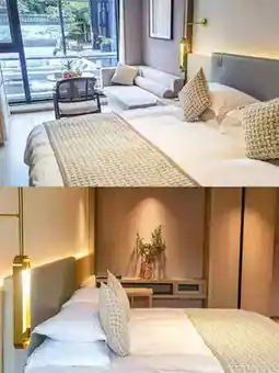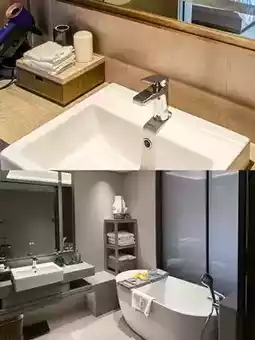 🌳 The room is full of design sense, spacious and bright, with excellent lighting 👍. The amenities are high quality, including a Dyson hairdryer, disposable bath bags, bath bombs, whole-house smart technology, plus welcome fruit 🍑 and mini bar drinks. The details are fully satisfying 🈵.