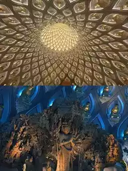 🏯 1st Floor Thousand-Hand Guanyin: 4000 sqm hall, the Thousand-Hand Guanyin statue is 33 meters tall (symbolizing 33 days), each hand in a different pose! When lit up, it looks like it’s “making a heart gesture”~