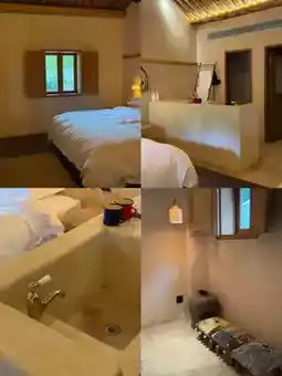 🏠 This trip, we stayed at "Year Ring Park · Fei Island," a homestay located halfway up the mountain. It was renovated from old village houses, each with a different layout design. We chose Building 8, Whale Whisper, which has a private courtyard and a private hot spring♨️. Before check-in, the housekeeper had already arranged the services👗, making it convenient for us to contact anytime.