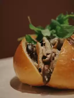 This time I ordered strawberry cake. The cake was very chewy and tasted great. It was paired with fresh cream that was not greasy. It was really delicious. For savory food, I chose sesame leaf Parmesan mushroom bread. The portion was a little empty, but the mushroom seasoning was really good. I just had a question mark about the sesame leaf that I was looking forward to.