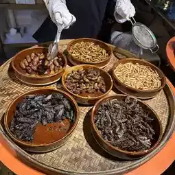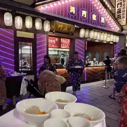 It will start around 6pm, the venue is huge, all street snacks to eat: sliced duck, stinky tofu, grilled oysters 🦪, and even fried worms to try! There are so many kinds of food that I can't finish them all! There are also many game booths for children and adults to play together. There are also programs to watch in the venue. It's super atmospheric!