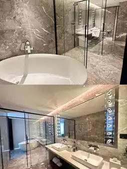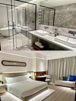 As soon as you walk into the hotel lobby, you can feel its unique design style, with a sense of sophistication. Every detail is handled with great care, with crystal chandeliers casting a soft light on the luxurious marble floor, making you feel like you're in an art gallery.