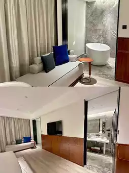 🛏The room is even more stunning, with a spacious and well-designed layout, a large and soft bed that feels like you're surrounded by clouds. The furniture is of high quality, and the warm lighting creates an incredibly comfortable atmosphere. The room is also well soundproofed, so you don't have to worry about being disturbed and can have a good night's sleep.