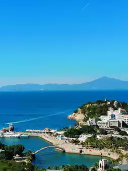 The island is covered with lush peaks and strange rocks. Climbing to the top of the mountain, you can gaze at the boundless sea, feeling relaxed and happy.