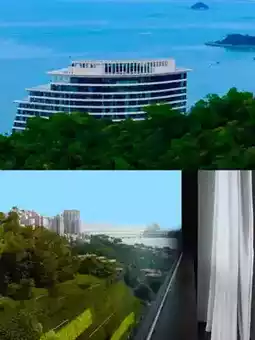 Huafa's products did not disappoint. The hotel is located next to Shijingshan Mountain, has an extra-wide balcony, and faces the sea. Just by looking at the exterior, you can imagine how beautiful the view inside the room is.