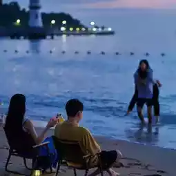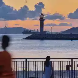 There is Zhuhai’s iconic lighthouse, next to a large beach where you can watch the sunrise, a shower room, and many cafes and restaurants nearby.