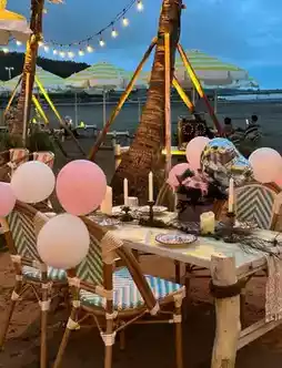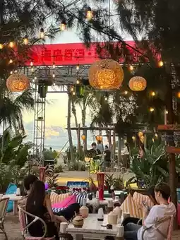 • Beach BBQ Set: Freshly cut Wagyu beef, garlic-flavored pork belly, Taiwanese cuttlefish sausage… sizzling with deliciousness, paired with iced drinks and a bonfire 🔥 for the perfect ambiance!