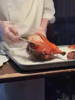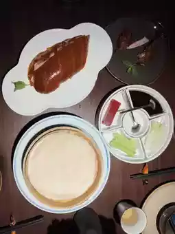 The roast duck here is prepared in front of the guests. Fresh ducks are carefully marinated and roasted, with crispy skin and tender meat. It is served with special sweet noodle sauce, side dishes and pancakes, making it mouth-watering.