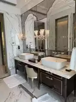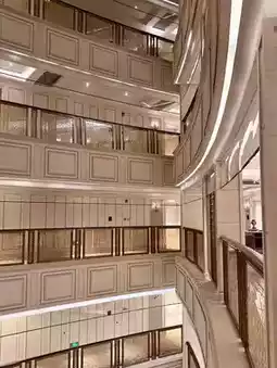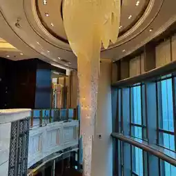 The 9-meter-high crystal chandelier is majestic and magnificent, complementing the marble decoration
