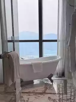 Floor-to-ceiling window bathtub 🛁—— Equipped with an extra-large floor-to-ceiling window bathtub, you can enjoy the night view of Macau while taking a bath