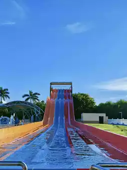 Zhuhai Haiquanwan Tourist Resort is a leisure resort that combines water parks, entertainment facilities and natural beauty. As you walk into the resort, the fresh sea breeze hits your face and your mood instantly relaxes. The resort’s water recreation facilities are dazzling, with winding slides bringing the thrill of rapid sliding, and splashes of water accompanied by bursts of laughter. The rafting river is cool and comfortable, letting the water gently push you, as if washing away all your worries. Visitors who like challenges can also experience the thrilling roller coaster, speeding through the sky and overlooking the beautiful scenery of the entire resort, which will make your heart beat faster. During your trip, you can walk into a restaurant to taste the local food, replenish your energy, and then take a stroll along the green trail. At sunset, the lake surface is shimmering with golden light, the lights come on, and the night and the lights interweave into a dreamlike picture, bringing a perfect end to the day's journey. Zhuhai Haiquanwan Tourist Resort is a place that blends happiness and nature, with both warm laughter and moments of tranquility. Every moment here is worth cherishing in your heart and becoming a shining fragment in your memory.