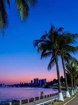 In the evening, I came to Zhuhai Lover's Road. This coastal avenue with a total length of more than 20 kilometers is like a silk screen belt of the city, connecting the sea, sky and prosperity. The sea breeze caresses gently, carrying a salty scent. The sea in the distance ripples. The setting sun spreads its golden afterglow across the sky, casting a romantic filter over the entire road. Strolling along Lover's Road, on the left is the rippling South China Sea, on the right are city buildings shaded by vegetation, pedestrians are leisurely, cyclists' bells ring crisply, and every step makes you feel the poetry and calmness of life. Passing by the Zhuhai Fisher Girl Statue, she gazes at the sea and sky, gentle and firm, like a representation of love and dreams. As night falls, street lights light up one after another, couples snuggle and whisper, children laugh and chase each other. This road is not only a scenic name card of Zhuhai, but also carries people's joy and thoughts. Walking on the Lovers' Road, it feels like stepping into a leisurely and poetic painting, and my heart becomes soft and peaceful with the sound of waves.