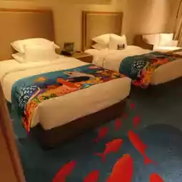 This hotel is definitely the top choice for family trips. The entire design revolves around an 'ocean theme,' which is very attractive to children. The lobby is grand and impressive, with jellyfish lights on the walls that catch your eye as soon as you enter. The rooms feature dolphin and underwater world elements that kids will love at first sight. The facilities are comprehensive, including multiple children's playgrounds, outdoor pools, water slides, and you can even watch the fireworks show from the Ocean Kingdom. The breakfast is very rich, offering a variety of Western and Chinese dishes, a children's area, live noodle cooking, sushi, and more, ensuring both adults and children enjoy their meals. The only downside is that it gets very crowded during peak seasons, so early booking is necessary, and you might have to wait in line for a while. The hotel staff are very patient and friendly with children. If you are visiting Zhuhai with kids to enjoy the Chimelong attractions, the Hengqin Bay Hotel is the most convenient and immersive choice.