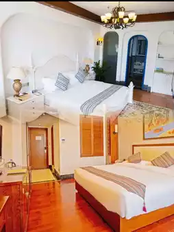 Staying at Haiquanwan Ocean Hot Spring Hotel, you will feel a comfortable and peaceful atmosphere. The rooms are simple and elegant in design, fully equipped with first-class bedding and bathroom facilities. You can also enjoy attentive room service and free breakfast every day.