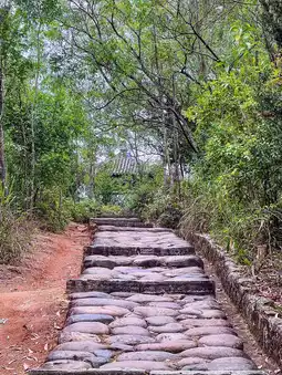 As you step into the ancient road, the heavy sense of history hits you. The stone road is winding and covered with moss, telling the story of time. The surrounding trees are towering with lush branches and leaves, blocking out the scorching sun.