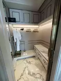 Put a double bed (very soft and comfortable), work table, refrigerator, and plenty of space to run and jump
