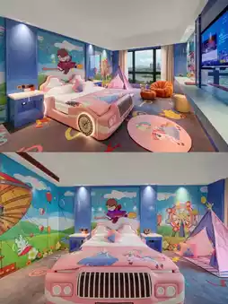 2. Family-friendly: Rich family entertainment facilities and playfully designed family children's rooms with space, racing car, rubber duck, and other themed designs allow families to enjoy happy times together.