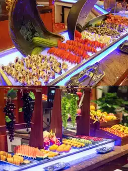 3. Buffet restaurant: A 1,200㎡ buffet restaurant with a rich variety of dishes, including Chinese stir-fries, Western pastries, grain porridges, and freshly cooked soups, noodles, and rice noodles to meet dining needs at different times.