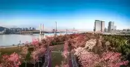 Scenes: Picnic on lawns, pink Bauhinia flower sea in spring