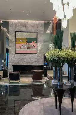 The hotel lobby features modern art decor with a strong Instagram vibe
