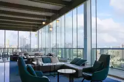 The guest rooms embrace a nautical theme, with floor-to-ceiling windows flooding the space with natural light. Luxurious touches include Villeroy & Boch bathroom fixtures and Hansgrohe showers.