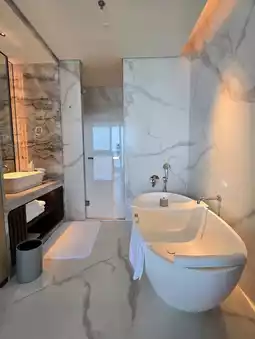 . From the comfort of the bed, you can enjoy breathtaking views of the Sun and Moon Shell and Xianglu Bay. The sunset during twilight is absolutely mesmerizing! ๐๐ The room also boasts a spacious balcony ๐, where every snapshot looks like a postcard-worthy scene! ๐ธโจ With a deep soaking tub ๐, you can relax while taking in the sceneryโpure indulgence! ๐๐ The room is equipped with a smart system, allowing you to control lighting ๐ก, curtains ๐ช, and air conditioning โ๏ธ with a single touch, adding a high-tech touch to your stay.