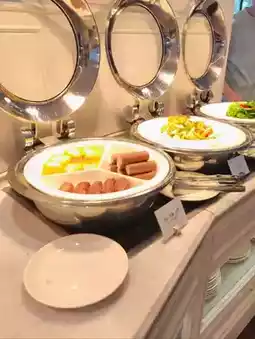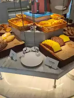 There are many breakfast styles, and many are made on site! Chinese food includes noodle soup, porridge, steamed buns, whole grains, fried noodles, rice, and pickled food; Western food includes instant smoked salmon Benedict eggs and omelette eggs, many types of bread, donuts, hot dishes, desserts, fruit salads, coffee and juice. Most of the food looks very attractive! The restaurant also provides tableware for children.