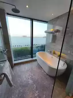 🛏️🛁 Room items/facilities: The room and bathroom can overlook the Hong Kong-Zhuhai-Macao Bridge, and the bathroom is very large. The bathtub is in the shower area, so it won't get wet around you👍🏼! The mattress is also very comfortable, not too hard or too soft. We had two adults and two children and were given 4 bottles of free water. All items for children can be collected by calling the front desk, and the waiter will deliver them to the room. For example, when we went swimming, we took two more bathrobes for the children.