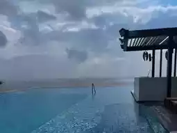 Step into the hotel and head straight to the infinity pool. The pool, like a sapphire embedded by the sea, seamlessly blends with the horizon. As you gently immerse yourself in the water, the waves caress your body, and when you lift your gaze, you are greeted by the boundless ocean, where the sky and sea merge into one. White clouds drift lazily, and distant ships appear faintly on the horizon.