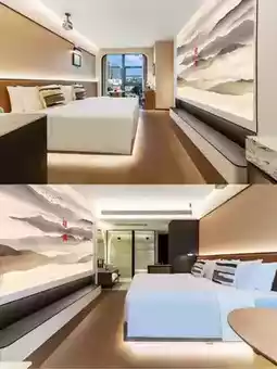 Located beside the Lovers' Road and next to the beach, Palm Music is a boutique hotel with music as its soul. Walking into the lobby, you can hear the soft melody in your ears, and your vision and hearing are healed together. The overall design combines tropical palms and music elements, with warm colors and brisk rhythms, just like a light jazz under the sea breeze.