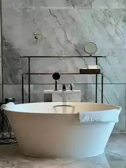 The room includes a spacious bathroom with a bathtub 🛁 and double sinks