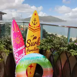 🌴 The poolside features cozy lounge chairs surrounded by palm trees, accompanied by the salty sea breeze. Order a signature cocktail 🍹 and spend a lazy afternoon soaking in the vacation vibes! The building also provides convenient changing rooms and showers, ensuring a hassle-free experience.