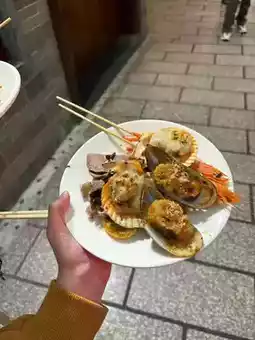 Quick notes on the must-eat list! The freshly baked "Scallion Seafood Fried Noodles" is full of pot steam, and the shrimps are so big that they burst with juice when you bite them; the "Sugar Haws with Glutinous Rice" is sour and sweet and super greasy, and it will sparkle when it is coated with sugar~ The most surprising thing is that the "Charcoal Grilled Oysters" are piled up into a small mountain, and the garlic sauce is spread all over. It is so delicious that you stomp your feet when you swallow it in one bite! !
