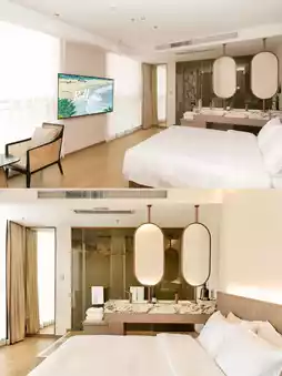 Standard 1.8m large beds and 75-inch giant-screen TVs